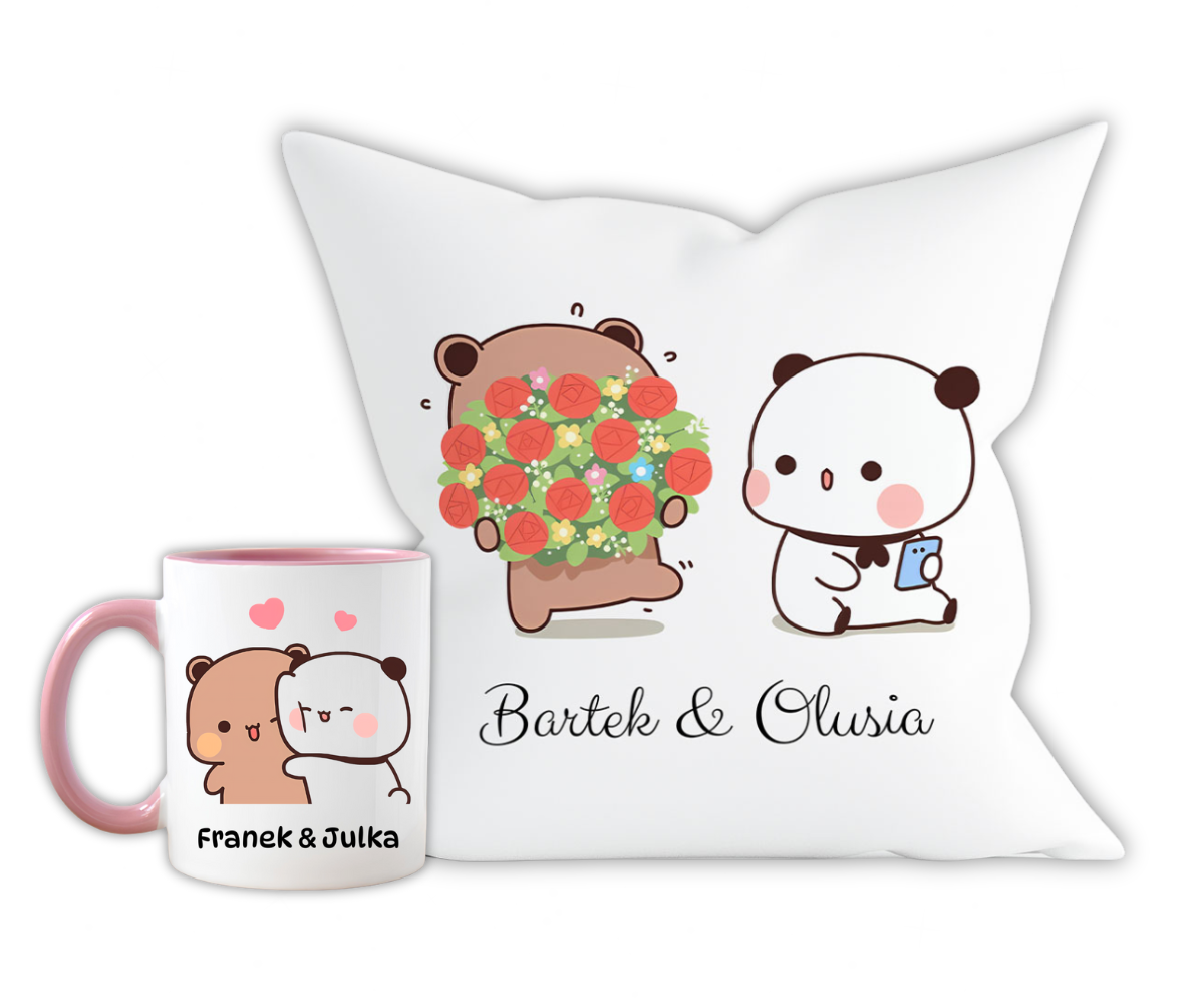 Personalizowany Zestaw: Poduszka + Kubek Bubu Dudu – Idealny Prezent dla Zakochanych ❤️🎁