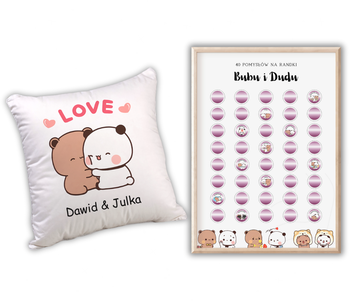 Personalizowany Zestaw: Poduszka + Zdrapka Randki Bubu Dudu – Idealny Prezent dla Zakochanych ❤️🎁